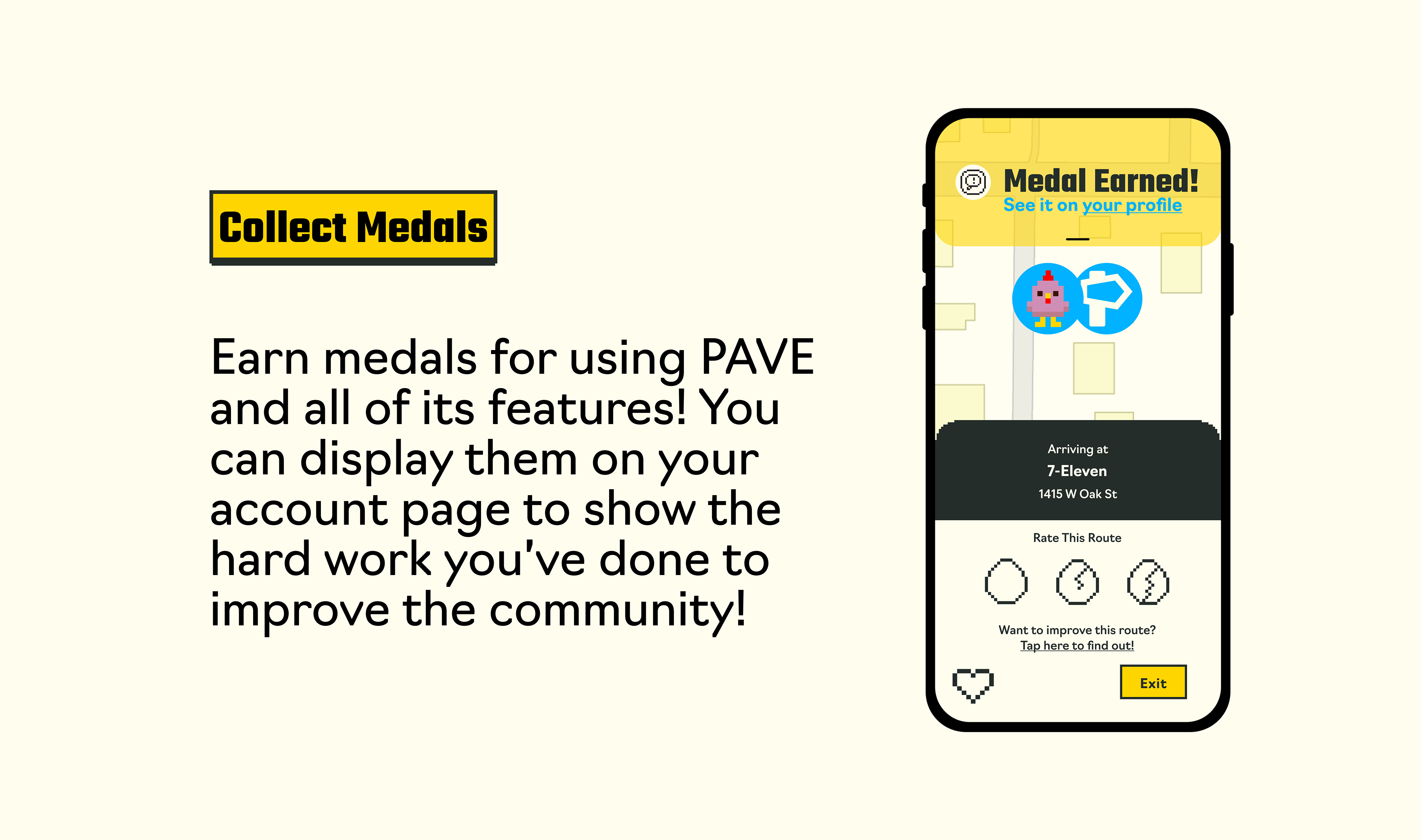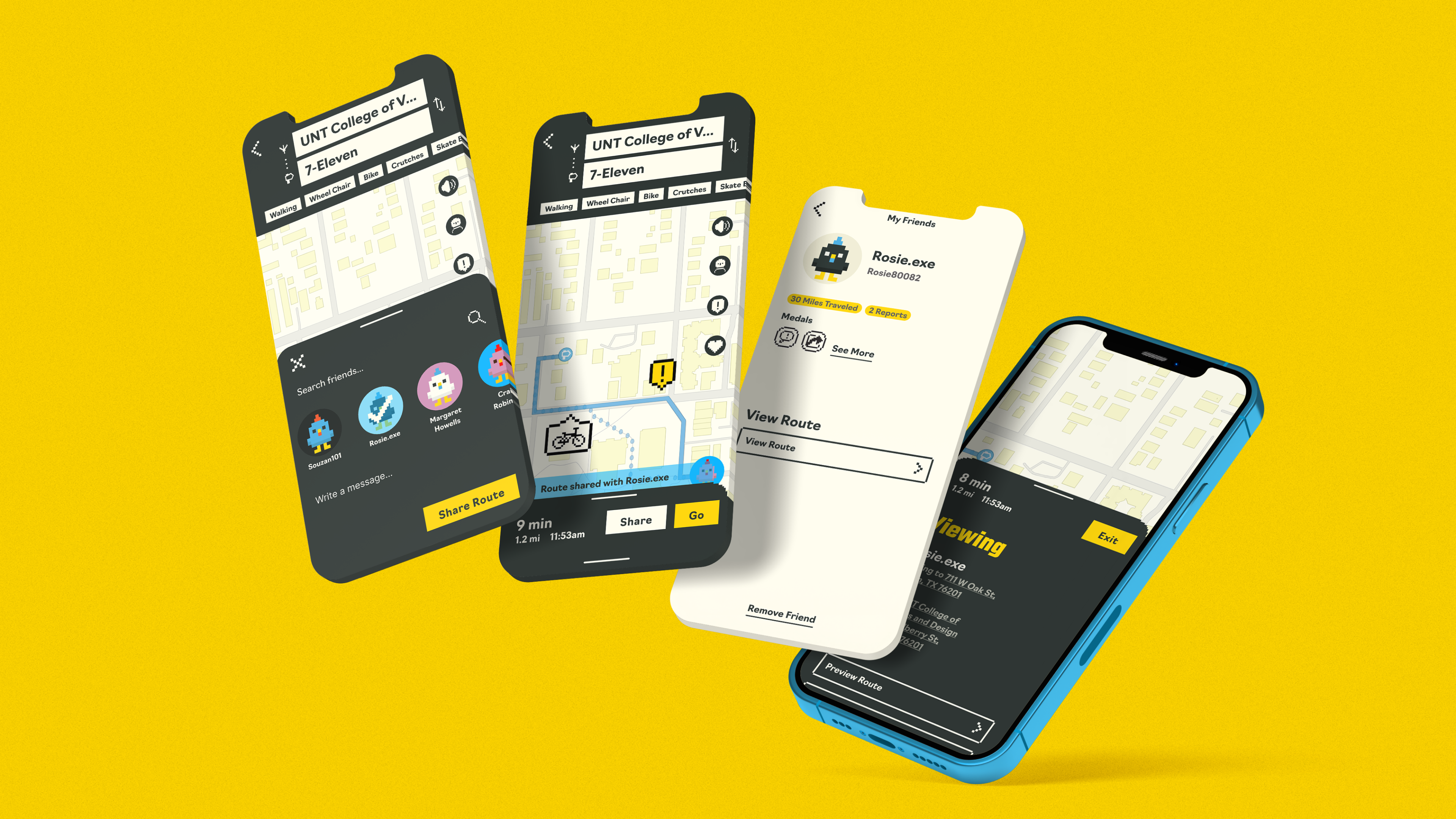 PAVE is an app that prioritizes pedestrian safety. With America prioritizing cars over pedestrians, PAVE aims to help prevent unnecessary road-related deaths by offering real-time navigation, revealing warnings for upcoming obstacles, and finding an accessible route no matter how you get around. Myself, and my incredibly talented group mates Macey Cowden, Nima Ayagh, and Case Van Dover, were tasked with creating and designing this app.
